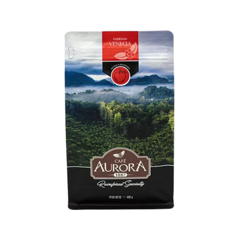 Desde la región lluviosa de Cobán, donde el “chipi chipi” y las más de 300 microclimas crean condiciones únicas, nace este café floral y complejo. Cultivado en la Finca Aurora, el Venecia es una variedad de maduración lenta, originaria de Costa Rica, que combina Bourbon enano y Caturra.