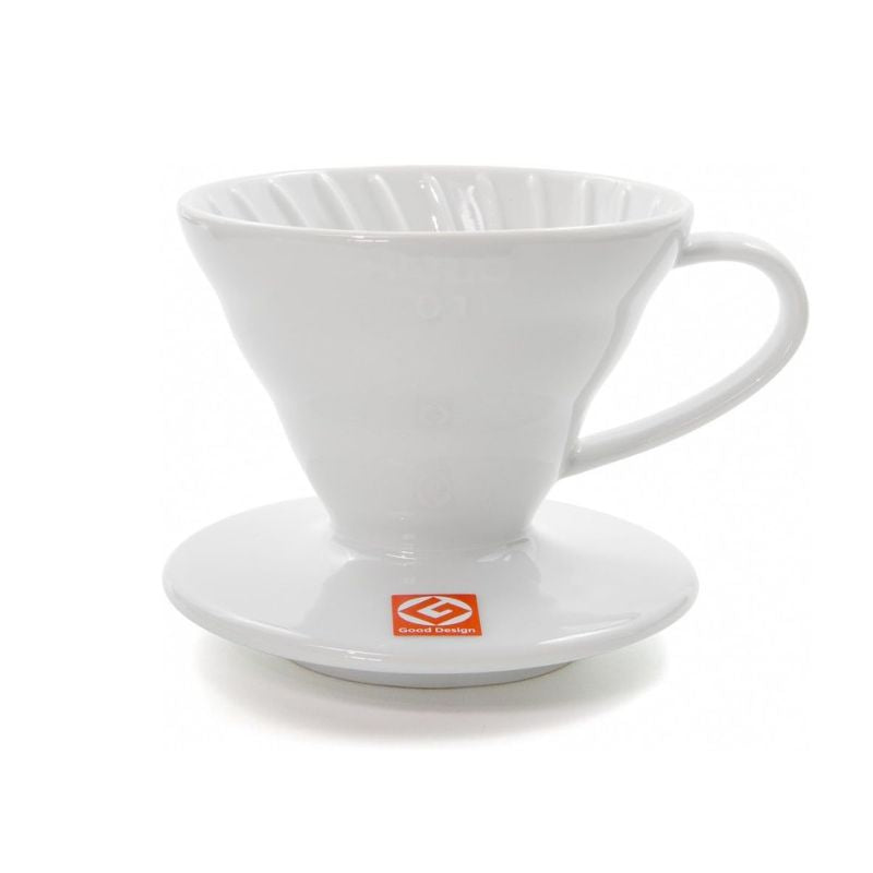 Fabricado en plástico blanco, es resistente, fácil de transportar y compatible con filtros cónicos V60 tamaño 01.